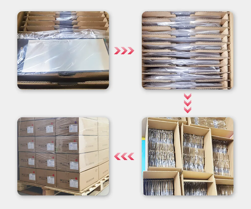 Амбалажа Тианфу користи потпуно прилагођени заштитну решење ТФТ ЛЦД дисплеја модула. Уграђене ладице су прилагођене прецизним димензијама ЛЦД модула (дужина, ширине, дебљине и закривљености ивица). Направљен од високо-жилавости АБС или ПП инжењерске пластике, носачи су обложени унутрашњем слоју ЕПЕ пена да би се осигурало нулта празнина, сигуран прибор између модула и ладице. Спољна кутија ТФТ ЛЦД модула екрана је направљена од пет слојева ојачане валовитог картона како би одговарала димензијама за ладице. Прилагођени делимици пена и ваздушне јастуке додају се унутрашњости, стварајући систем заштите од четири нивоа: модул-ладице-унутрашњи спољни.