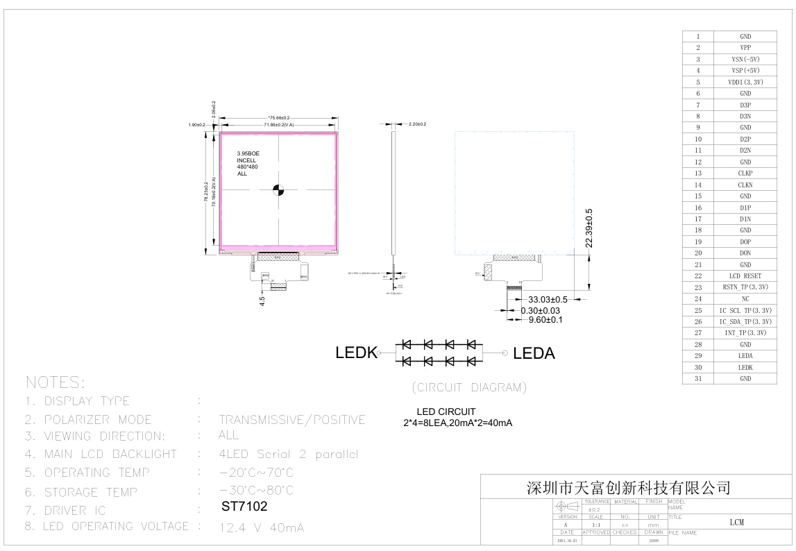 Осветљеност до 500 цд/м² и широк опсег радних температура од -30°Ц до +80°Ц обезбеђују савршене перформансе како у затвореном тако и на отвореном. Ефикасно ЛЕД позадинско осветљење и модеран МИПИ интерфејс чине га идеалним за ваш следећи пројекат, нудећи и супериорне перформансе и енергетску ефикасност.